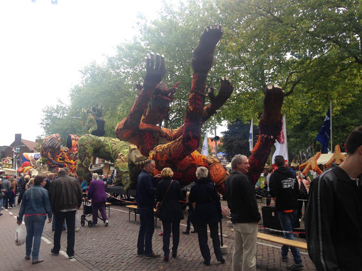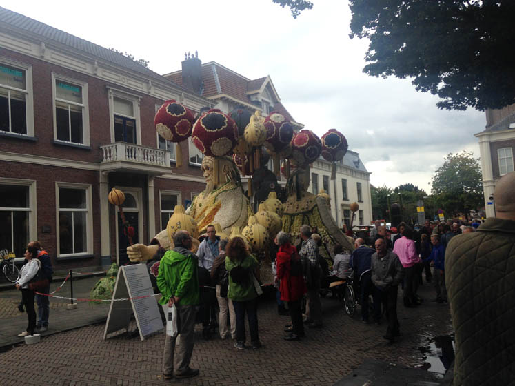 We gaan met de pubers en m’n ouders naar de binnenstad! Daar is een foodtruck-festival en… alle fruitcorso-wagens staan opgesteld, zodat je ze van dichtbij kan bekijken… er is trouwens ook nog eens een braderie, dus het is hartstikke druk, maar ook hartstikke gezellig. Heel knap gedaan van Tiel, dat mag ook wel eens gezegd worden!