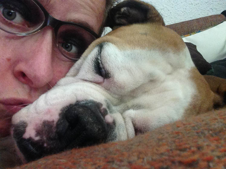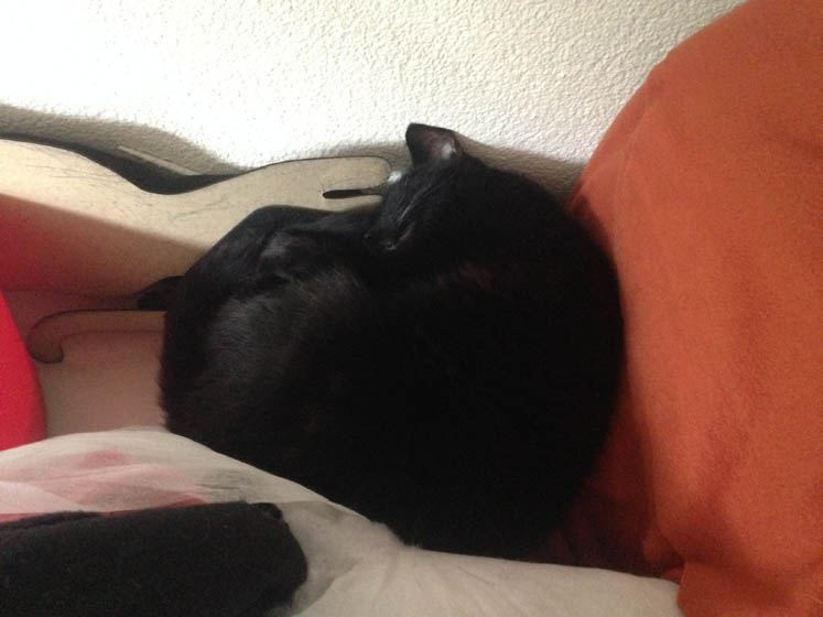 ’s Avonds komt vriendinnetje F. langs. Heel even op adem komen van deze totaal ongeorganiseerde dag. Ze is erg blij met de luiaard-knuffel. Bruce ook.