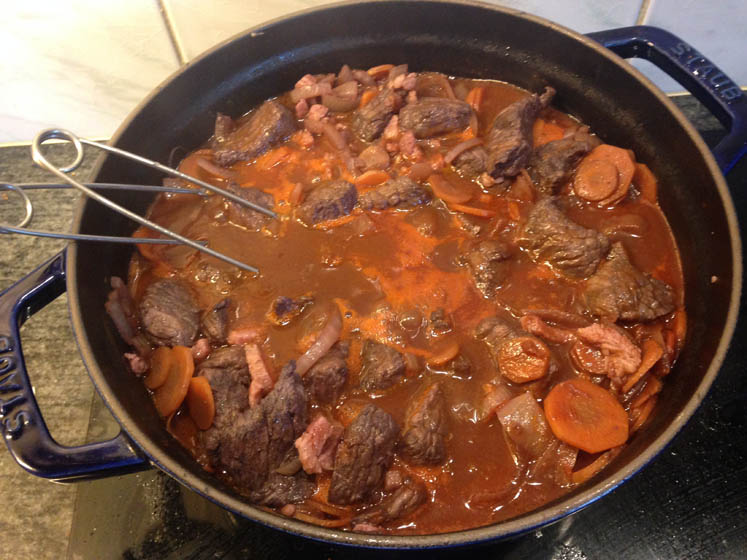 Ondertussen maak ik een grote pan boeuf bourguignon, daar hou ik ook van.