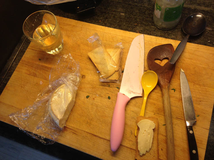 Tijdens het koken een wijntje erbij en een toastje erbij, hou ik ook van.