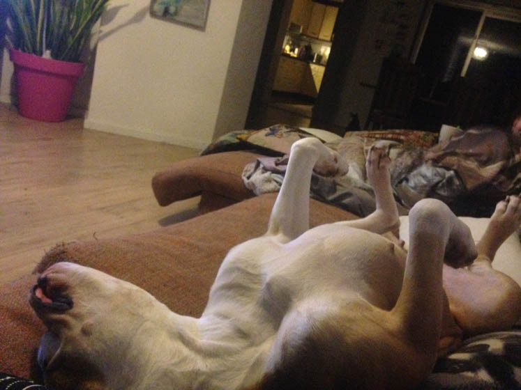 Ja, kind! Geniet nog maar even van de bank, want ik weet nu dat hij er morgen niet meer staat!