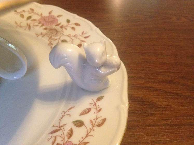En eentje met een eekhoorntje! Om het dessert op te serveren. ’s Avonds gaat J. naar de rugby en dochter S. en ik hangen rond in m’n atelier. Zij praat mij de oren van m’n kop en ik knoop ondertussen een dromenvangertje in elkaar. Gezellig!