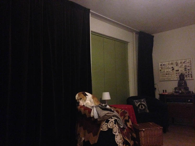 Daar is jou plekje! Kijk haar eens zielig kijken.
