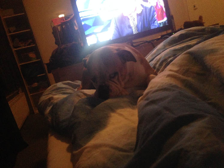 Maar… hoe ze het heeft gedaan, geen idee! Maar ze heeft J. zover gekregen dat ze op bed mag slapen! WOEHOE!