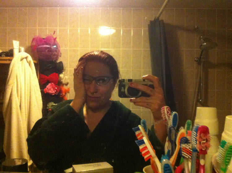 Ik laat Nina uit, maak m’n plog van gisteren, schrijf nog een stukje hier en daar en ga dan eindelijk m’n haren verven. In nummer 666! Het allerbeste haarverfnummer als je het mij vraagt… en van m’n schoonvader geleerd dat ik altijd nummers moet kiezen die met een 6 beginnen.