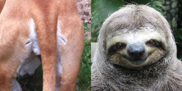 Ik laat Nina uit en ineens zie ik het! De kont van Nina ziet eruit als een luiaard. #iseefaces