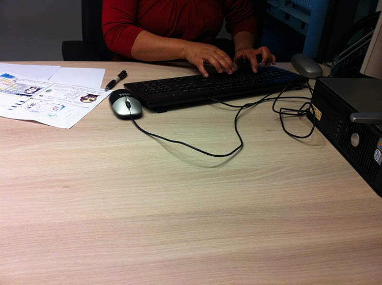 De ambtenaar van burgerlijke stand doet nog wat dingetjes op de computer.