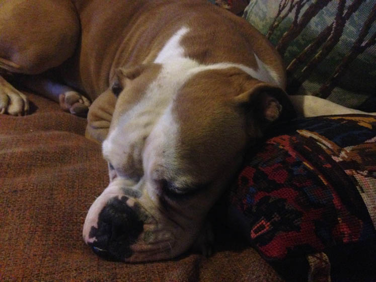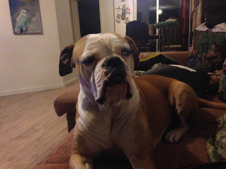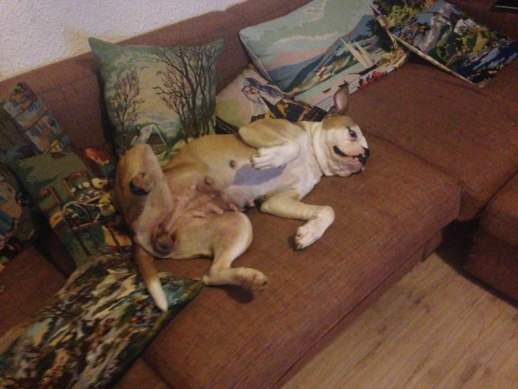 Veel gezelliger toch zo op de bank samen. Ik ga uiteindelijk alleen naar bed en Nina mag mee. En ze mag ook bij me op bed, want ik lig helemaal alleen zo zonder m’n man en ik vind er niks aan.