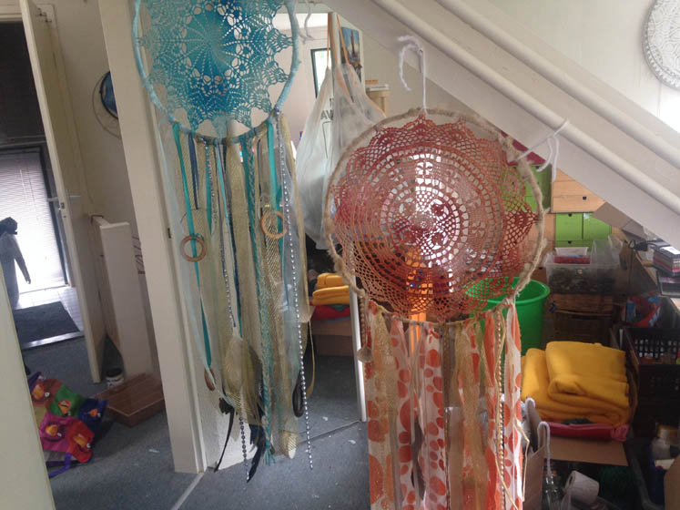Ha! Het is woensdag en het wordt tijd dat ik weer eens wat dromenvangers maak, want de shop is leeg en ik heb nog een paar opdrachten liggen.
