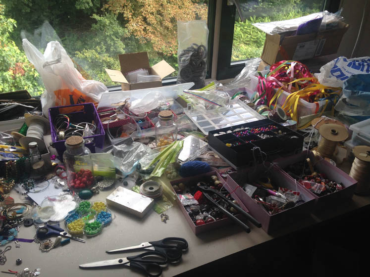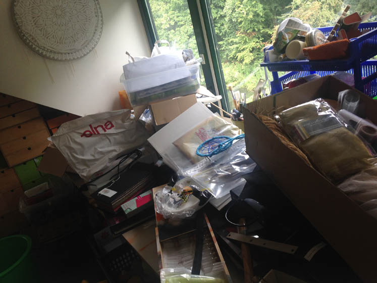 Misschien moet ik eerst even wat ruimte maken, maar op de een of andere manier werkt dat niet heel prettig voor me. Ik heb het binnen een half uur toch weer ondersteboven gegooid. Ik creëer het beste in de chaos.