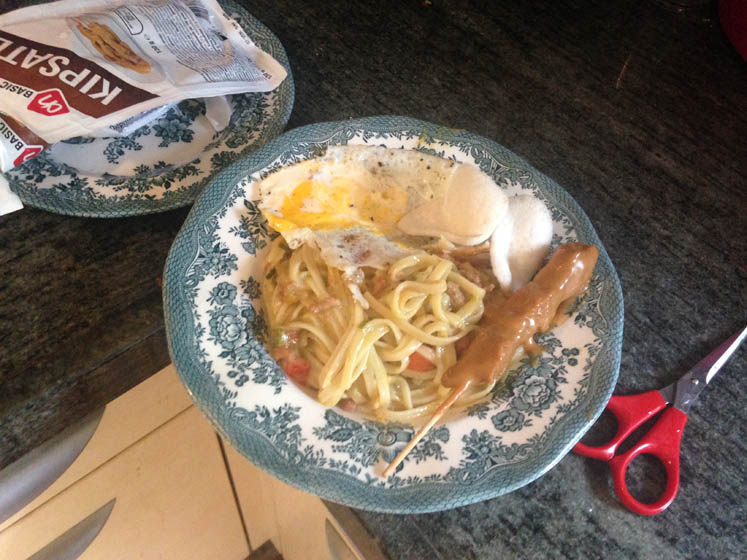En we eten niet al te laat een bord bami. Hmmmm…
