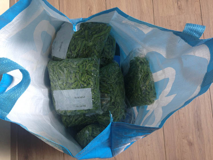 Ooooh! Kijk nou eens! Ik hou heel veel van mijn ome Hans en tante Nel!!! Die hebben gisteren een paar uur 25 kilo (!!!) snijbonen staan draaien en J. en ik krijgen 4 kilo voor in onze diepvries! ZALIG!!!!!