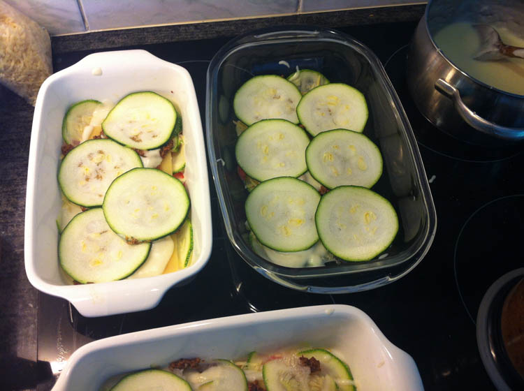 Ik maak een vegetarische lasagne met zelfgemaakte rode pesto, zelfgemaakte bechamelsaus…