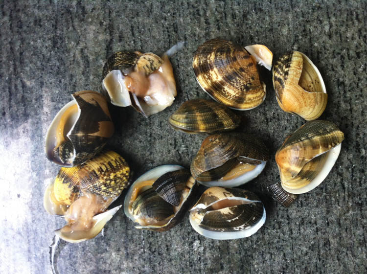 Hier word ik boos van. Ik koop een kilo venusschelpen in een netje, maar ik kan er bijna een kwart van weggooien omdat ze gebroken zijn. Zonde! Zonde! Zonde!