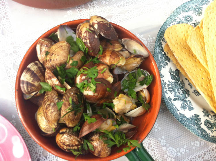 Ik haal uiteraard weer een zak met venusschelpjes, want vanavond tapas met vrienden.