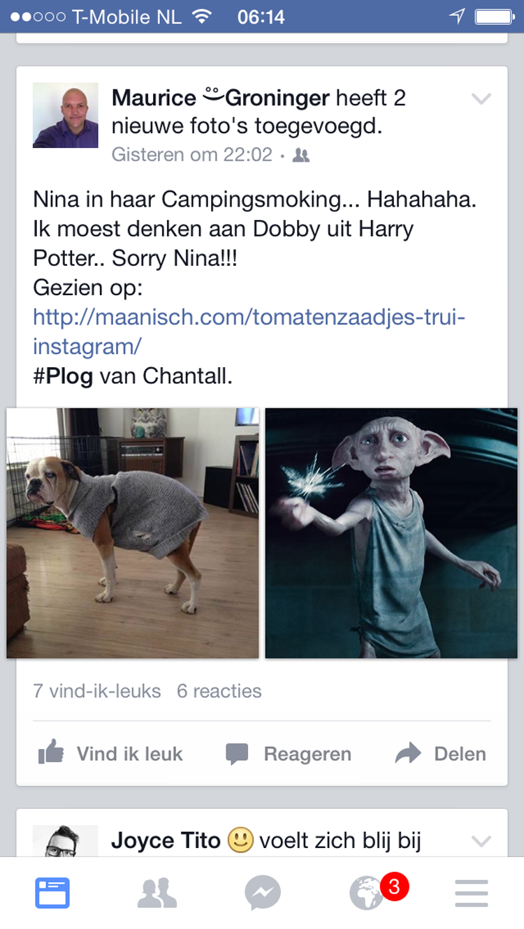 Aaaaaah! Nina wordt vergeleken met Dobby! Op zich wel een hele goede vergelijking trouwens…