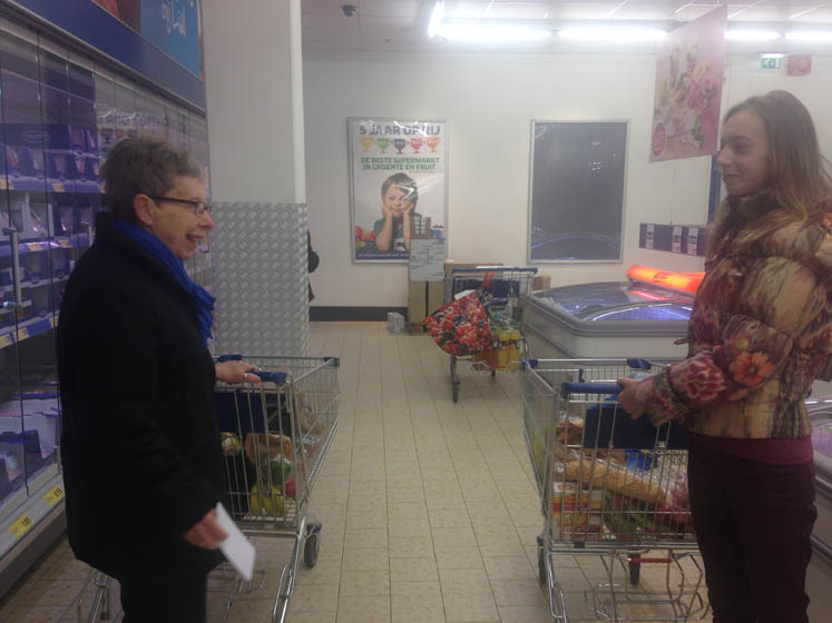 Om 8:00 is het tijd om naar de LIDL te gaan! En… dit was ook een hele grote droom van oppaspuber M.!