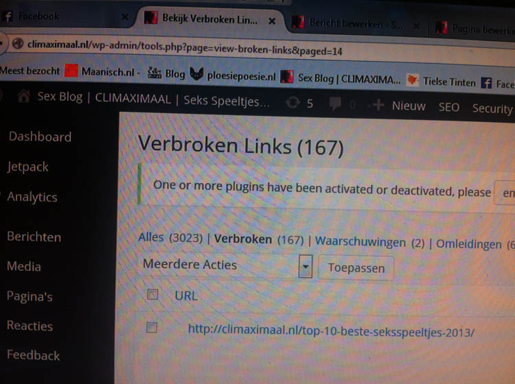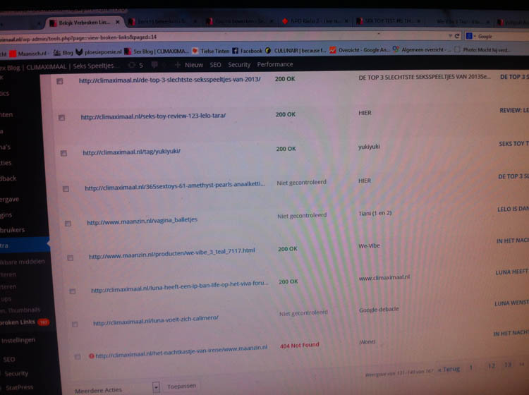 Wekker om 7:00, koffie en meteen achter m’n pc om alle dode linkjes van www.climaximaal.nl te gaan verwijderen. Had er wel eens van gehoord en ach, wat maakt het nou uit dat sommige linkjes op je site niet meer werken, maar na checken bleek dat er meer dan 500 linkjes niet meer werkten. En ja, dat is niet zo handig voor bezoekers en ook Google wordt er niet zo blij van. Ik ben uiteindelijk de hele ochtend en middag bezig om alle links aan te passen.