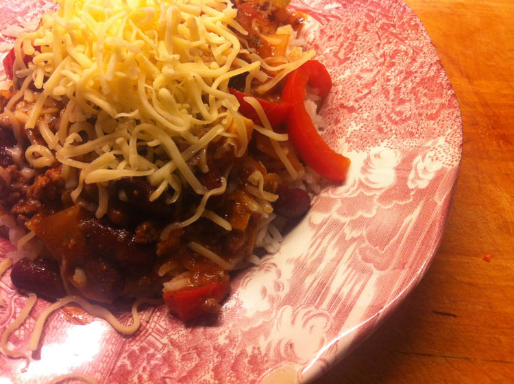 ’s Avonds maak ik een grote pan chili con carne (tevens voor de diepvries en voor m’n ouders).