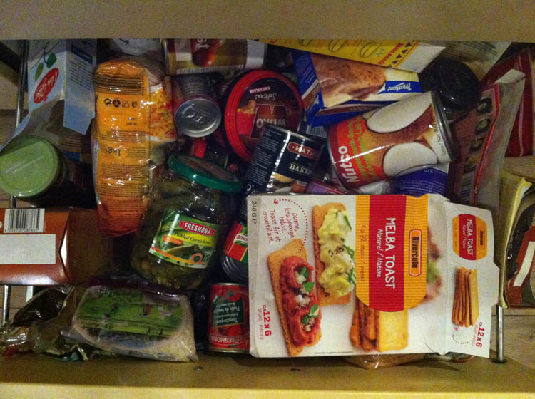 Soms helpt het enorm…. alles even door je handen laten gaan en rommel weggooien… Tegen de tijd dat jouw sloffe koekjes en je kleefrijst in Afrika is aangekomen is het toch al bedorven…. en bedorven eten daar hebben al die kindertjes in Afrika ook niets aan….. eigenlijk bespaar je ze een buikloop door het gewoon hier weg te gooien…