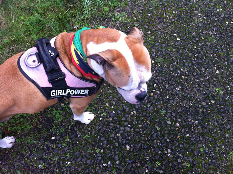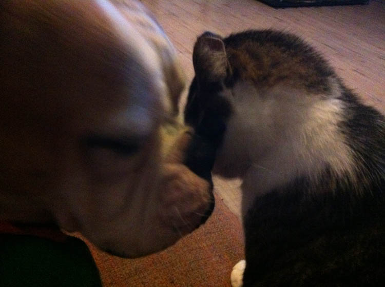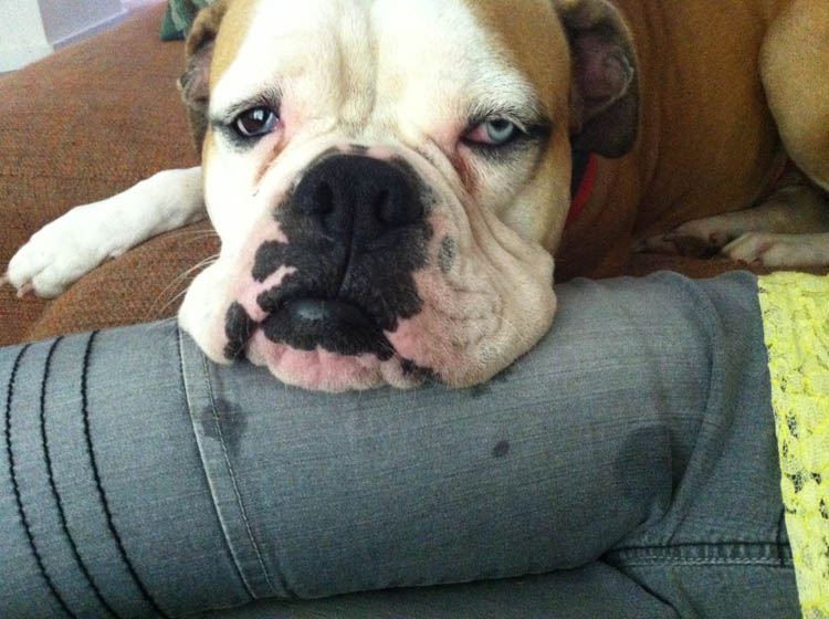 …hond? Haha! Hier ligt Nina lekker te loungen op het been van oppasmeisje M.! Die is ook een beetje hangerig en duf, net als de echtgenoot. Lekker setje bij elkaar zo. Ik maak trouwens nog een batch Jamaicaanse patties met kip (voor in de diepvries).