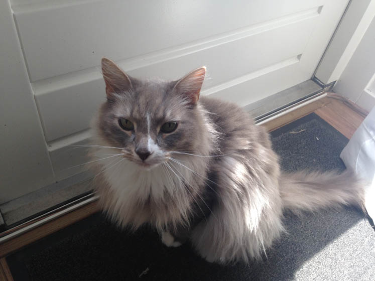 We gaan nog even onze voederpoes voeren. Hij is boos. Hij wil naar buiten.