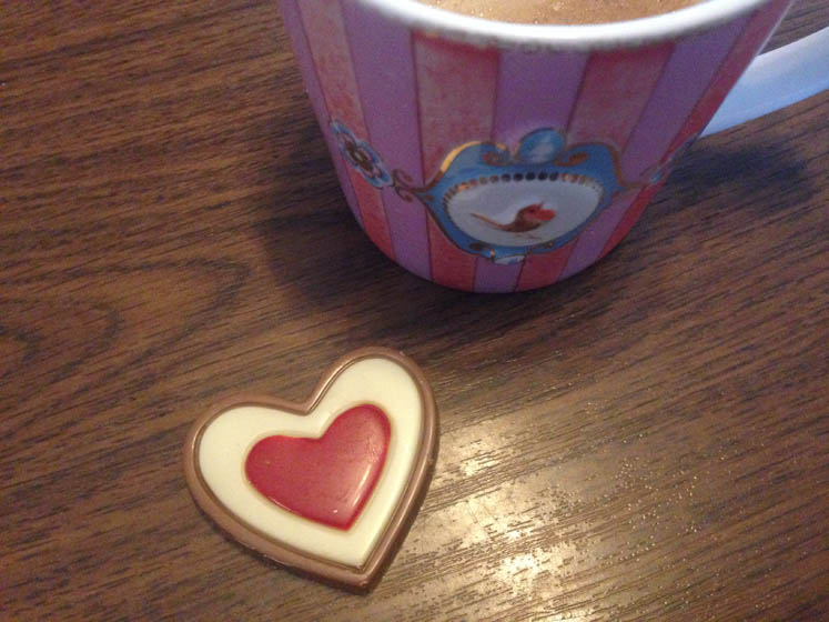 We krijgen een grote pot chocolade. Dit is niet goed voor ons. “Ja, ik kan toch moeilijk met een bos wortels aankomen”, zegt de buurvrouw. Heeft ze helemaal gelijk in.