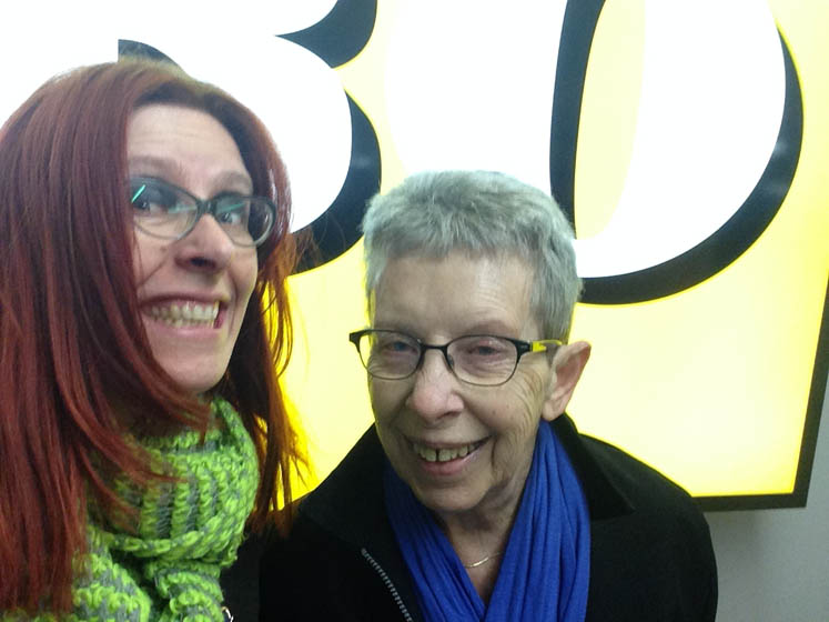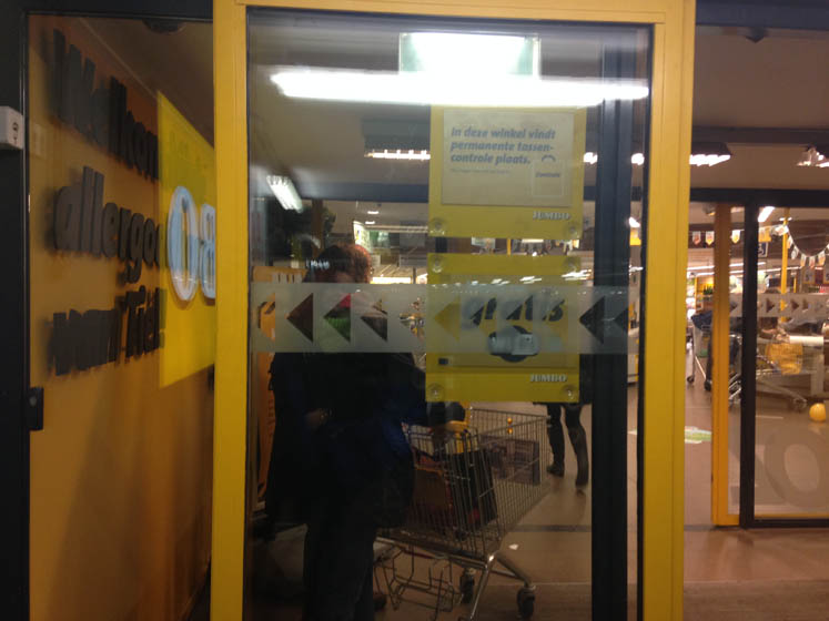 Kijk, zo ziet een vrouw die amper geslapen heeft eruit. M’n moeder heeft prima geslapen. We staan voor een bord van de Jumbo, maar we zijn natuurlijk naar de LIDL geweest.
