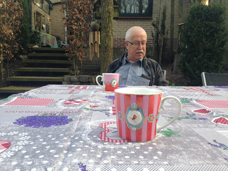 Hier staat m’n vader met iemand te lullen. Hij kent half Tiel, dus hij komt altijd wel iemand tegen om mee te lullen.