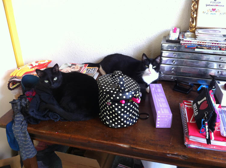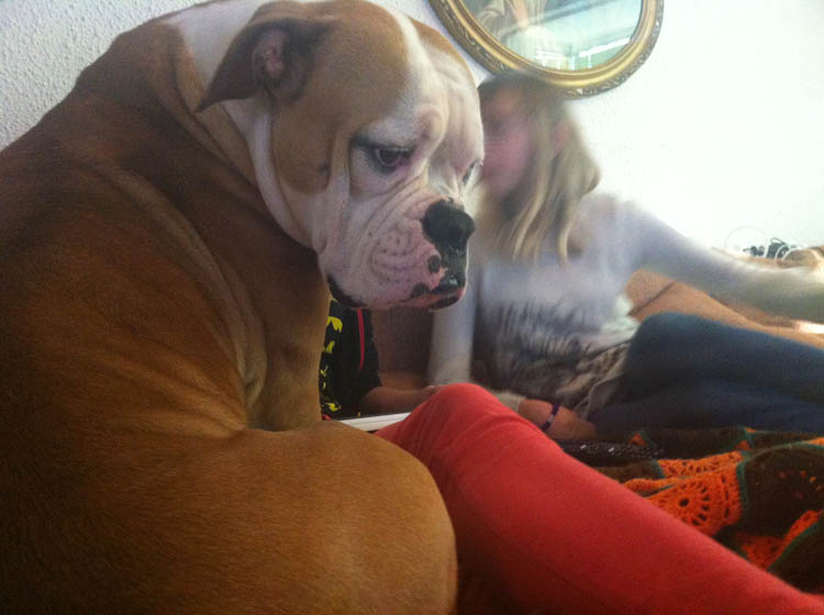De verkering is inmiddels thuis en we kijken met z’n vieren (en Nina) naar diverse poezenfilmpjes op Youtube. Altijd lachen!