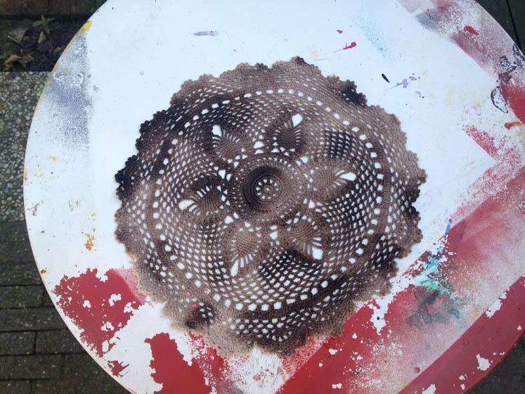 M’n vriendinnetje K. komt langs, ziet een dromenvanger en gaat meteen aan het haken!