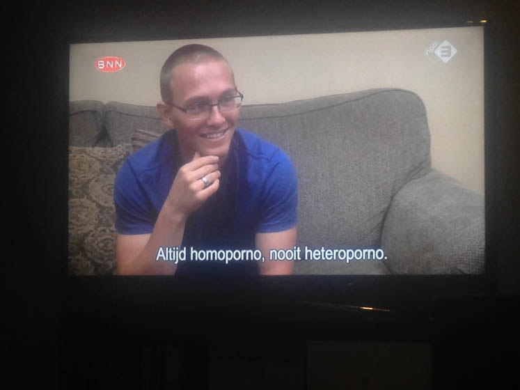 We sluiten de avond af met een verontrustende documentaire over Amerikaanse jongens en mannen die denken dat hun homoseksualiteit te genezen is. Echt verschrikkelijk pijnlijk om te zien. Het liefst zou ik zo’n jochie in huis nemen en zeggen dat hij z’n hart moet volgen. En z’n lul. GAAN! Doe het wel veilig en zorg dat je om 23:00 weer thuis bent, zodat je mij nog even op de hoogte kan brengen van alle smeuïge details, maar laat je verder door niemand iets wijsmaken.