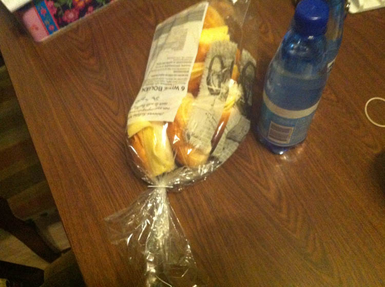 Broodjes met kaas smeren voor tijdens onze wandeling.