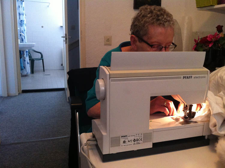 Wéér geen ochtendselfie? Nee! Het was een hectische ochtend! Oppasmeisje M. is vrij, maar daar kwam ik pas gisteren achter en toen had ik al met m’n moeder afgesproken dat ik bij haar aan m’n trouwjurk zou werken, want er moest nog een dingetje en dat ging niet op mijn naaimachine. Dus de verkering is deze ochtend al vroeg op pad gegaan met M. om boodschappen te doen, naar de AVRI te rijden, alvast bier te halen voor ons trouwfeest en ook alle lege flessen weg te brengen. Goed bezig geweest dus. Van de verkering hoorde ik dat hij voortaan liever met M. boodschappen ging doen, omdat hij van M. wél allemaal snoep en koek en chocolade in mocht laden. M’n moeder vindt m’n trouwjurk uiteindelijk wel meevallen en zolang ik er verder niks meer aan oppimp loop ik niet zo heel erg voor lul, vindt ze.