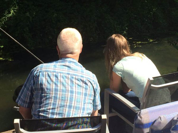 M’n vader laat m’n moeder en mij met rust en gaat bij ons in de tuin zitten vissen met oppasmeisje M.