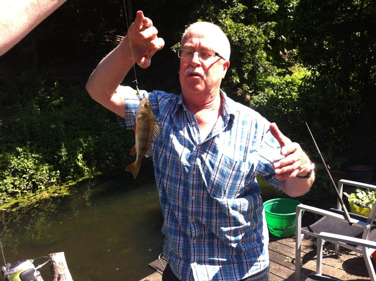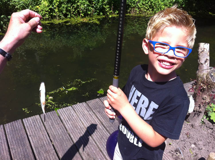 En nog al zo’n blij kind! Dit is D., die kwam ook even vissen met Piet en is héél erg trots dat hij een vis gevangen heeft!!!