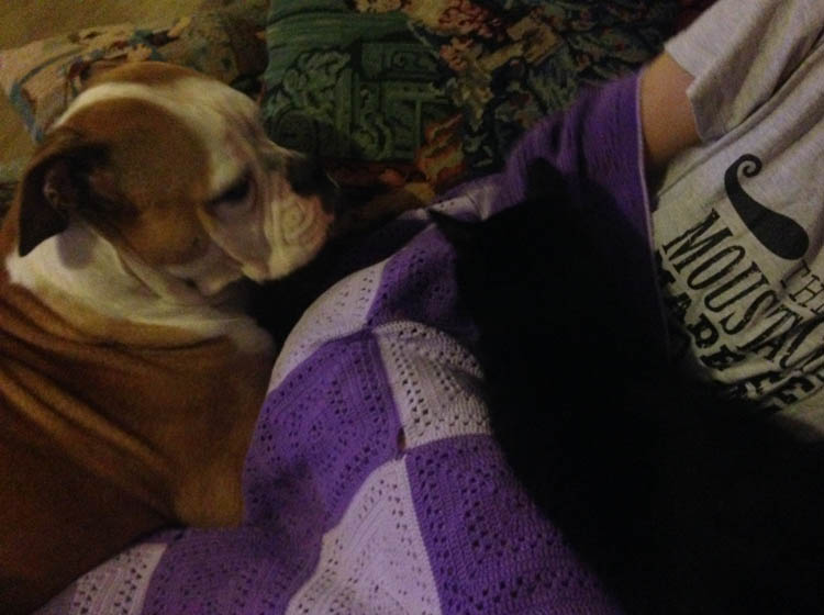 Bruce ligt toch het liefste zo. Hoe zoet zijn ze zo samen.