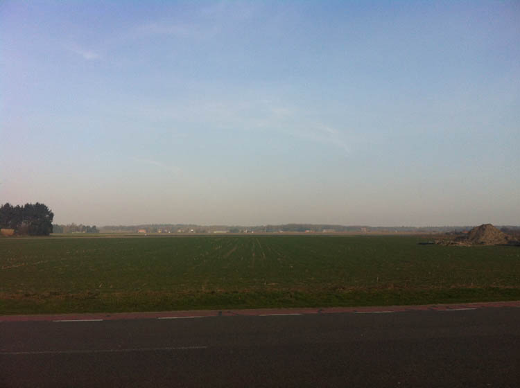 Wanneer de dagen gaan in domme regelmaat / En bolle oostenwind het land nog vlakker slaat / Dan wacht mijn land, mijn vlakke land.