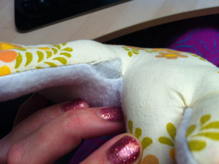 Hier word ik ook niet blij van… een PloesiePoesie die bijna klaar is om te verzenden trek ik per ongeluk kapot (want ergens niet goed vastgenaaid). Ik moet er duidelijk nog even inkomen.