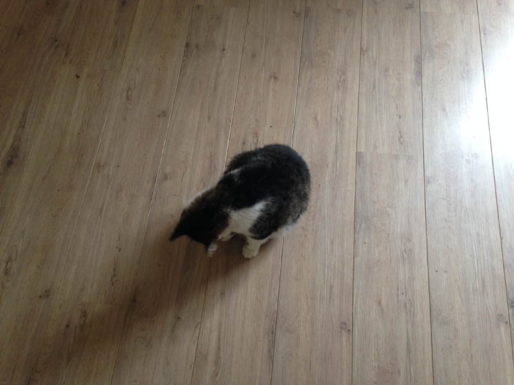Kater Frank zat in een gevecht met een buurpoes (maar welke) en is in het water gevallen. Kletsnat kwam hij binnen, maar is hier alweer een beetje opgedroogd.