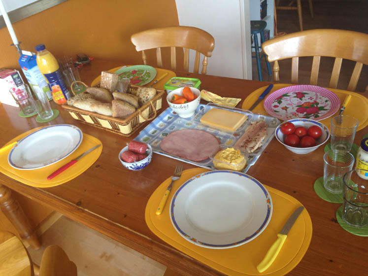 Gelukkig is de tafel al gedekt bij de moeder van J. en haar man! Hmmmm! Dat was een lekkere lunch!
