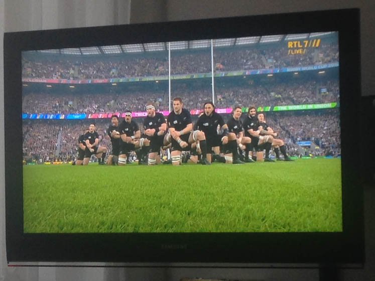 Om samen met R. en N. naar de finale van het WK rugby te kijken.