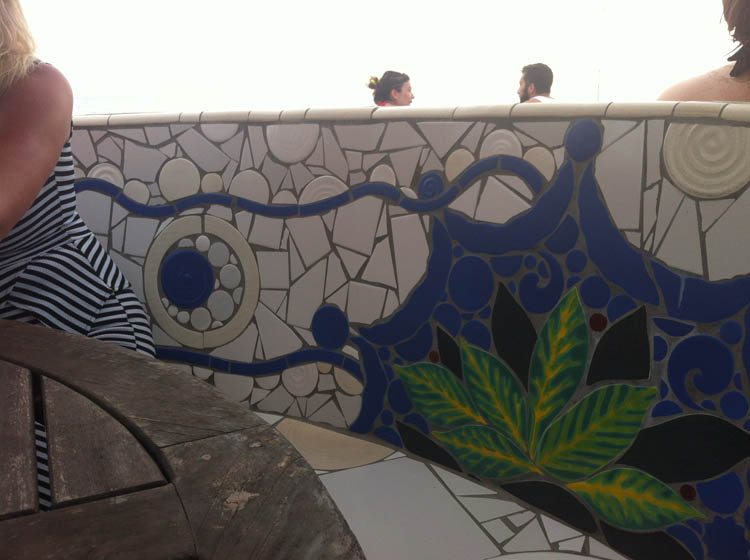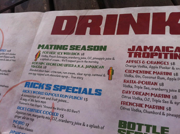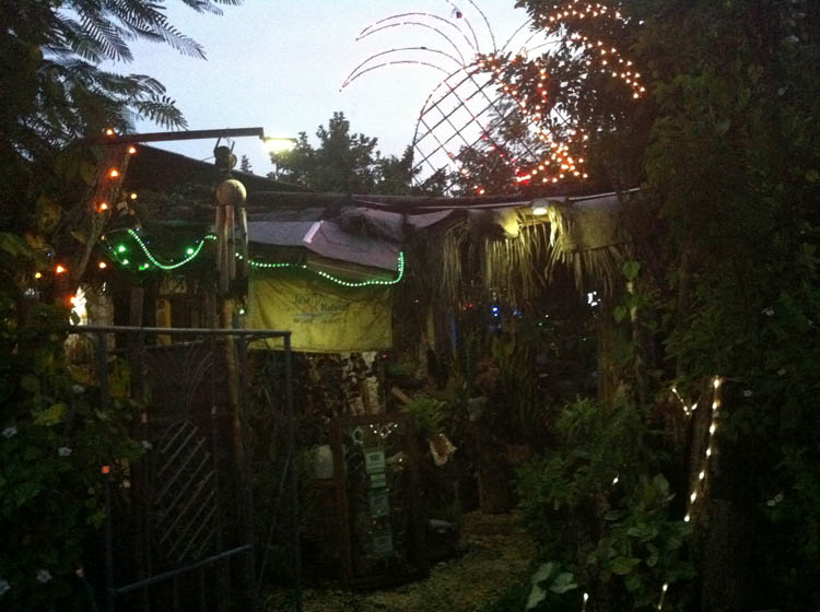 Daarna gaan we door naar een restaurantje met de naam Just Natural en dat zag er ongeveer zo uit als op de foto, maar echt, deze foto doet de sfeer totaal geen recht. Ik kwam binnen en was completely overwhelmed. Het leek wel een Jamaicaans sprookjesbos met allemaal planten, bomen, bloemen en alles was versierd met kerstlichtjes en het was zo mooi dat ik spontaan begon te huilen (en nu ik dit zo opschrijf zit ik alweer met tranen in m’n ogen). Het was op dat moment gewoon de allermooiste plek op aarde. Het Jamaicaanse vrouwtje van wie het restaurant was (type XXXL mamma) zag dat ik aan het huilen was en kwam me meteen een knuffel geven en ja, dan is er natuurlijk helemaal geen houden meer aan. HAHA!