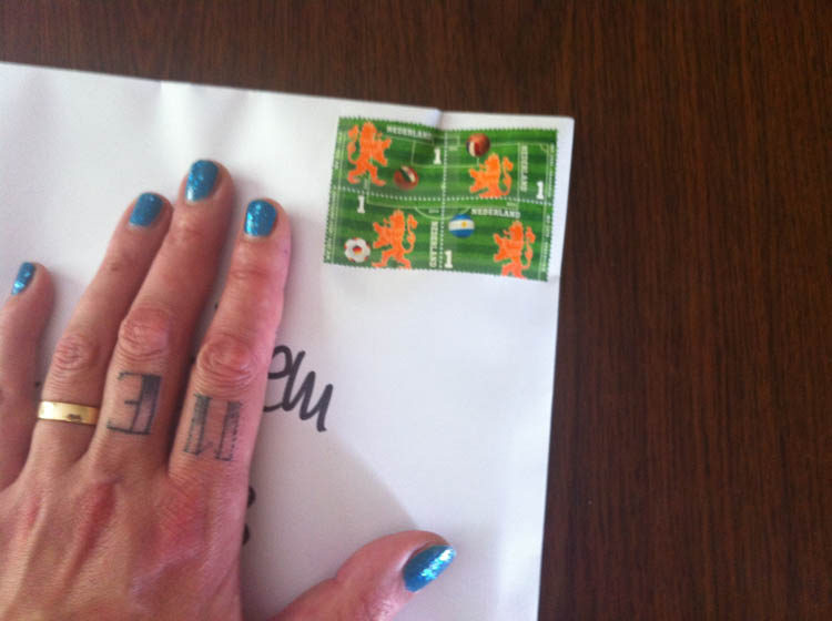 Ik stuur een envelop met WK-hamsters naar zoontje D. van vrienden! Gave postzegels ook!