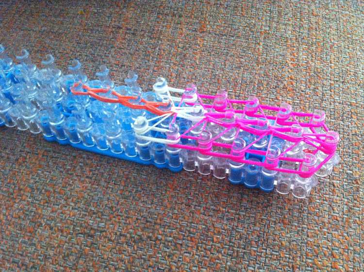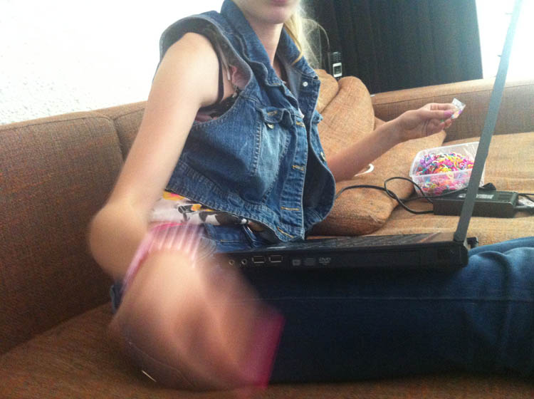 En… het is ONGELOOFLIJK, maar de televisie is de hele dag niet aan geweest!!! Oppasmeisje M. was 1 met de loombandjes en de loombandjes waren 1 met haar! Applaus! Het is zelfs al zover dat ze beter is in loomen dan ik en ze wil wel graag dat ik haar kom helpen, maar volgens mij vraagt ze dat steeds expres, zodat ik moet zeggen dat ik er niks meer van snap en dat ik een beginner ben en zij een gevorderde. HAHAHA!