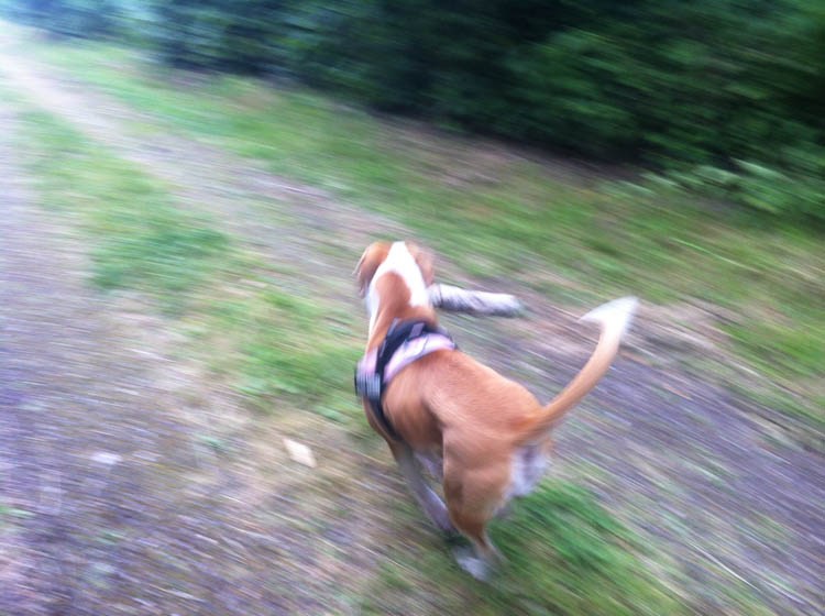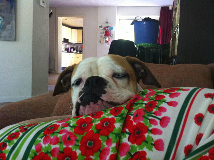 Bruce is ook heel blij dat het weer allemaal normaal is. Een normale maandag. Een normale ochtend waarbij ik achter m’n pc zit en hij me de hele ochtend kan irriteren met z’n liefde.