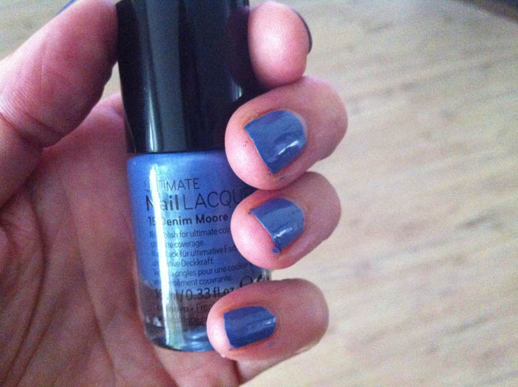 Ik laat M. een nagellakje voor mij en voor zichzelf uitkiezen. Ik krijg deze (Denim Moore) en voor zichzelf heeft ze een paarse gekozen (Heavy Metalilac). Ik vind de namen van de nagellakjes van Catrice altijd geniaal. In een volgend leven wil ik echt graag terugkomen als een Beauty Blogger in plaats van een Seksblogger.