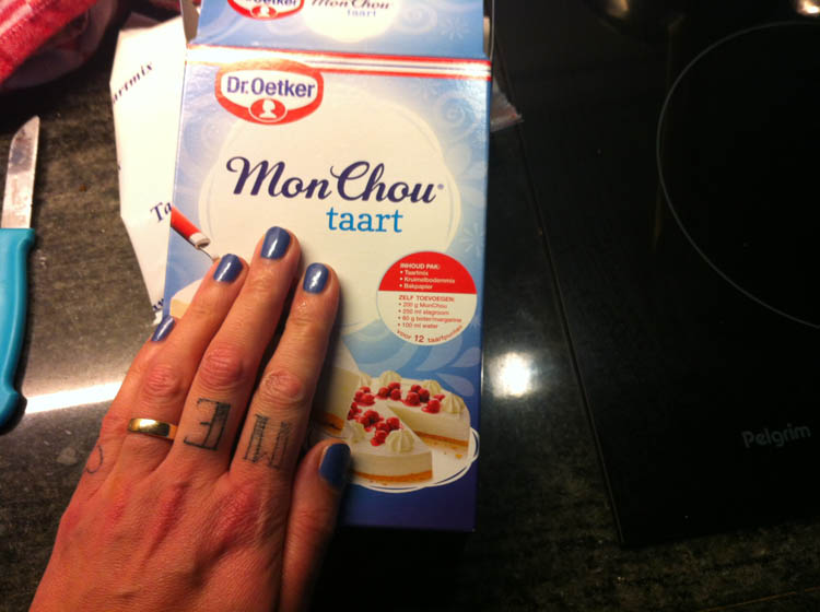 Als je niet weet wat je moet doen in je leven, dan kun je het beste een taart maken. Uit een pakje, ja. De taart staat in de koelkast, dus 1 ding is zeker morgen; er is monchou-taart.