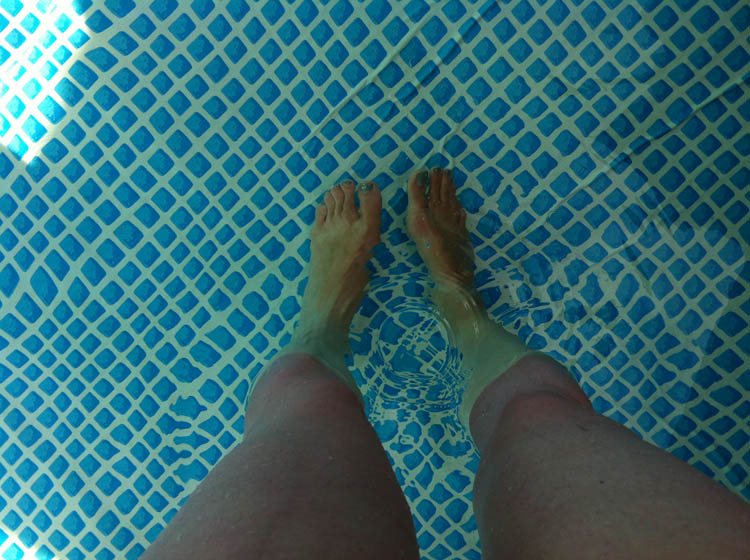 Okay, okay, okay, ik geef toe; het is wel heel lekker zo’n zwembad in de tuin. Jillz erbij, lekker loungen, hangen en binnen 10 minuten ben ik al verkleurd. Nee, niet verbrand, al lijkt dat op de foto zo, maar dat komt omdat we een rode parasol hebben.