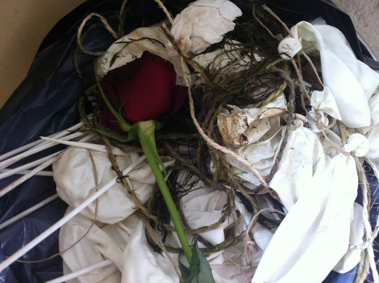Dit geeft zo ongeveer wel het beeld weer van de ochtend en middag. We ruimen de tuin en de woonkamer op. De echtgenoot heeft nogal een naar gevoel over het einde van het feest en dat is een understatement. Hij had liever gehad dat we die nacht naar een hotel waren gegaan. Ik kan het iets makkelijker van me af zetten, al had ik nu ook graag in een bubbelbad gelegen en in een schoon huis thuisgekomen. We krijgen gelukkig veel lieve berichtjes van mensen die het super hebben gehad en van het gedoe op het einde van het feest niets hebben meegekregen. Dus… LOSSSS… van ons af… We zijn getrouwd! We hebben 2 feesten gegeven en we leven nog! HOERA!